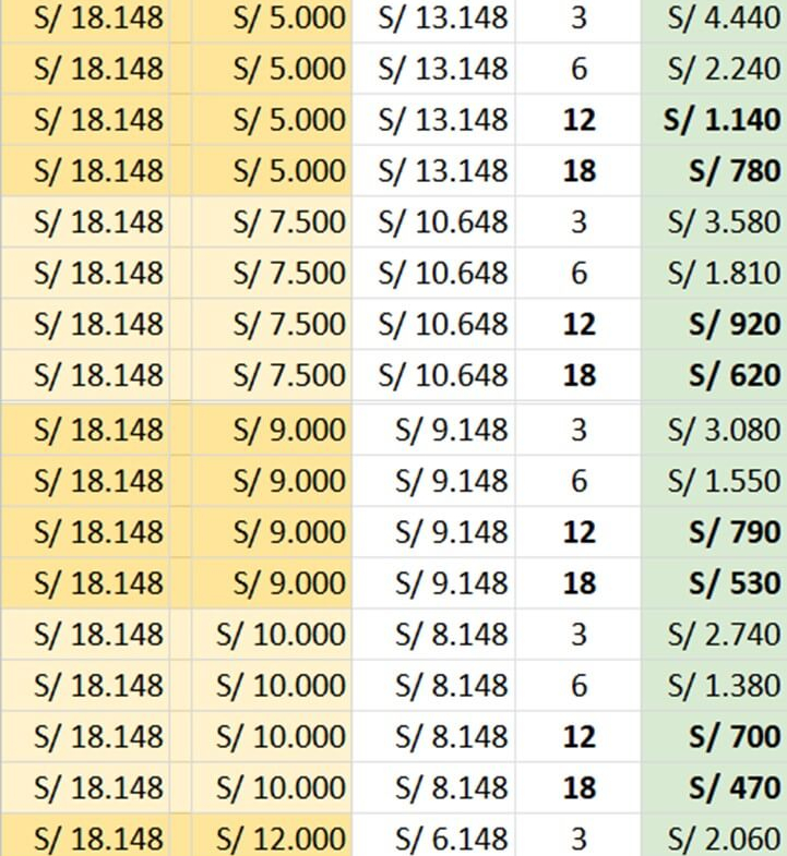 - Cuota inicial S/10000 soles + 24 cuotas de S/360 soles